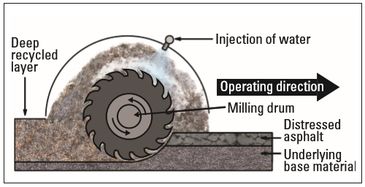 FDR consists of in-situ pulverization, with added cement and water, to a typically failed asphalt pavement, utilizing a portion of the underlying base, to create a new pavement base layer.